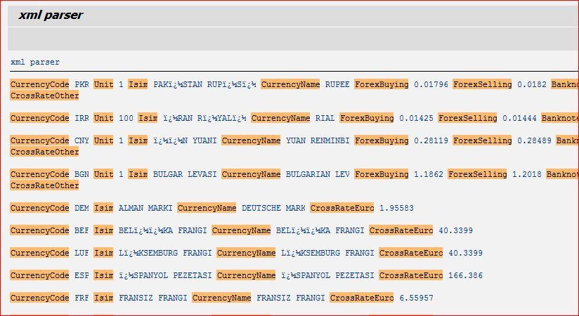 merhaba, bu yazımda abap ile xml dosyasını nasıl parse edeceğimizi anlatacağım. öncelikle örnek olarak belirlediğimiz tcmb‘nin bize sağladığı today.xml dosyasını cl_http_client sınıfını kullanarak içeriğini string formatında çekeriz. daha sonra bu veriyi xstring formatına çevirip abap xml parser‘ın kullanımına hazır hale getiririz. if_ixml_parser arayüzünün parse metodunu kullanarak xml verimizin hiyerarşik yapısını çıkarmış oluruz. burada bir hata çıkarsa xml dosyası standartlara uygun değil demektir. bu adımdan sonra tek yapmamız gereken bize gerekli olan currency düğümlerini çekmek ve bu bilgileri ekrana yazmak. bunu düğüm iterasyonu ile yapabiliriz. aşağıdaki örnekte iterasyon bitene kadar verileri çekip bunları sırayla ekrana basıyorum.
